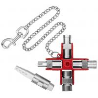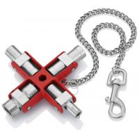 Kapcsolószekrényekhez, a gáz,- vízellátás és áramellátás elzáró rendszereihez. Épületek olyan műszaki berendezéseihez, mint a klima- és szellőző berendezések, elzáró szelepek, hálózati kapcsolótáblák, stb. Betétheggyel: 1,0 x 7 mm horony és PH2 kereszthorony. 1/4″-es szerszámhegyekhez való adapterrel, rögzítő láncon. További bitfelvétel az ¼” bithez egy karban. Hosszú kivitel, karhossz összesen: 76 mm. Plusz négyszög 5 mm. nyomásos horganyöntvény